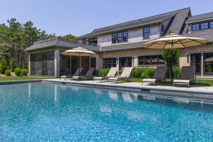 Outstanding Katama home set on two private acres and featuring summer living at its best.  Families will enjoy the beautifully furnished, large screened porch opening onto the deck overlooking the pool...Read more
