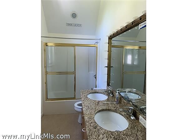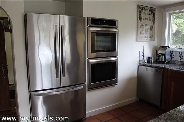Enter Main house from the covered porch -matching custom arch doors lead you to either the mudroom/laundry room-kitchen entry, or the living room. The kitchen has Mexican tiled floor & granite counters with stainless steel appliances & gas 4 burner cooktop. & Double wall oven. Eat in Kitchen dining area with lots of natural light and 2 glass sliders to the deck and patio. The pantry hallway leads to living room (off hallway) is a full bathroom with glass block tiled shower. Open Livingroom with cathedral ceiling and wide pine floors. Slider leads to covered porch and back deck. Versatile floor plan with many options for accommodating multi-generational living, au pair suite bedroom with loft, home office or privacy for guests with their own entrance. Another large bedroom is located just off the living room. The back of the house is wrapped with a 30x20 deck, with distant water views of Vineyard Sound & Tarpolin Cove on Naushon.