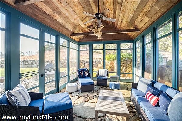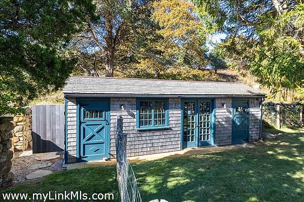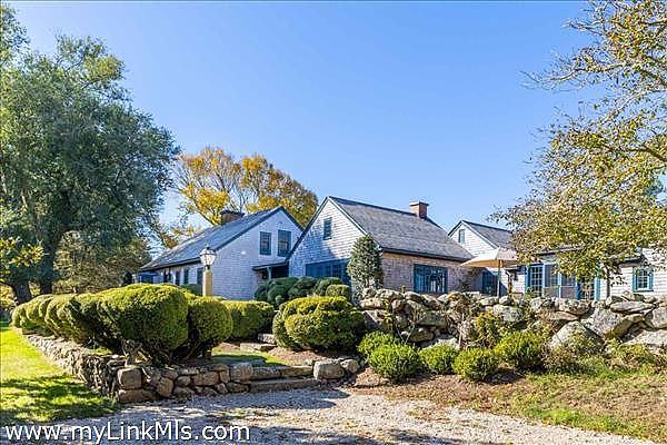 Nestled within Seven Gates Farm, one of Martha's Vineyard's most storied and scenic communities, this 26.5-acre estate offers a beautifully renovated farmhouse that seamlessly blends modern comforts with historic charm. Surrounded by ancient stone walls, mature trees, and lush gardens, the property includes a charming guest house, scenic walking paths, and a peaceful hilltop retreat with a stone bench, offering stunning water views of Vineyard Sound and the Elizabeth Islands. Ideally located just steps from Gray's Beach and dock, this is one of the most picturesque properties in Seven Gates Farm. The Seven Gates Farm community consists of 45 homesites on 1,600 acres with 1,000 acres of protected conservation land, open fields, woodlands, ponds, and miles of trails for walking and horseback riding. Residents of Seven Gates Farm also enjoy exclusive access to 1.5 miles of private beach, two piers, and two tennis courts. This rare opportunity allows you to become part of a remarkable community, once an assembly of farms, that remains dedicated to the preservation and stewardship of the land.