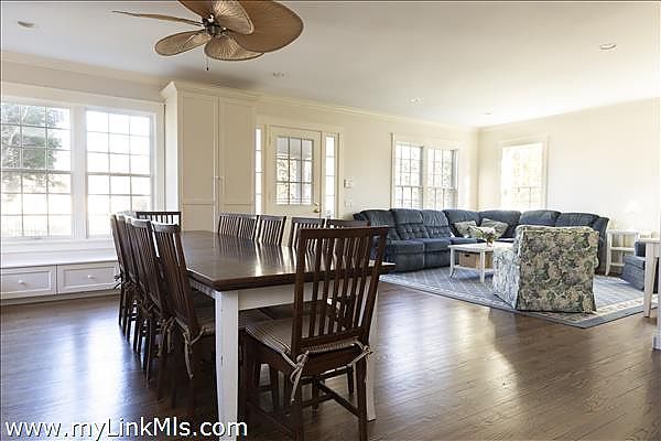 The kitchen/dining area includes: 3 refrigerators and 6 freezer drawers, a 5-burner gas stove and oven, dishwasher and microwave. Finished basement (1,000 square feet). Basement includes: 3 washer/dryer units. Outdoor deck with table, chairs and an outdoor grill.