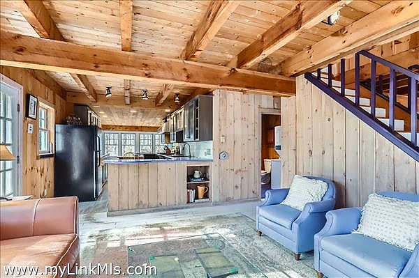 This thoughtfully designed post and beam home blends craftsmanship with character, featuring artistic touches throughout that make it truly one-of-a-kind. The kitchen flows beautifully between the main living areas and an inviting dining space surrounded by windows offering access to one of several outdoor decks for effortless indoor-outdoor living. On the first floor, the primary suite includes a private sitting room with built-in shelving, a cozy fireplace, and direct access to a secluded outdoor shower-a true island luxury. A first-floor half bath/laundry with a door to an additional outdoor shower is perfect for guests. Upstairs, a generous flex space provides multiple options—it could serve as an office, recreation room, or be reconfigured as an additional bedroom. The level also includes two existing bedrooms and two full bathrooms. A two-car garage with finished space above offers further versatility and potential for expansion, detached bedroom or convert to an ADU. With an existing five-bedroom septic system, this property is well-positioned for future growth, whether you're considering guest accommodations or more living space.