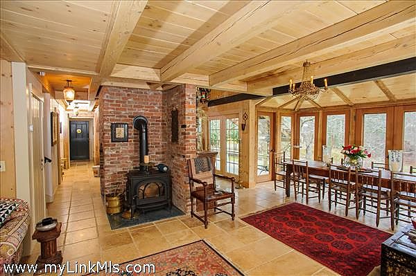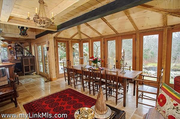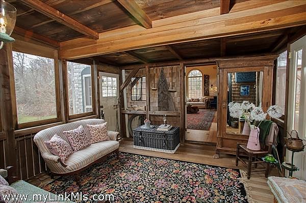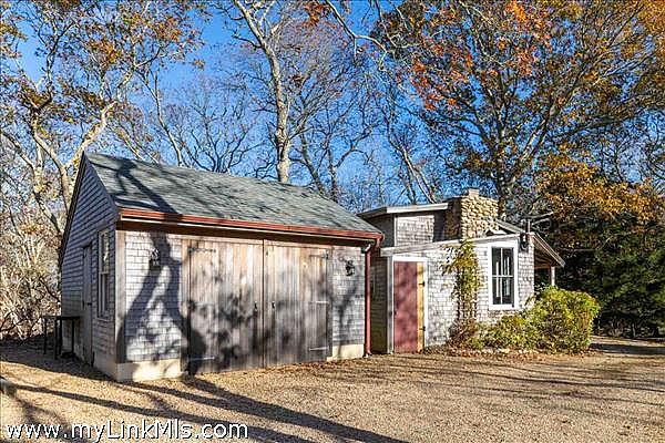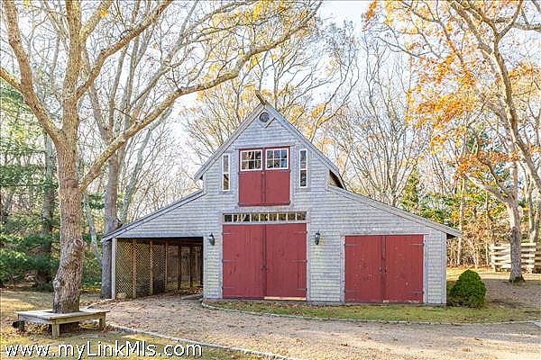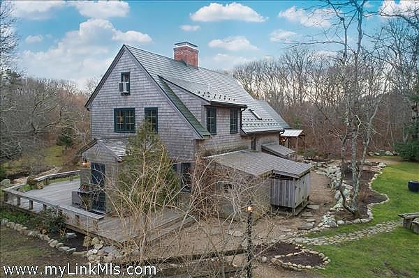 You will find this outstanding property at the end of a quiet country lane in West Tisbury nestled alongside hundreds of acres of conservation land and walking trails that extend all the way to Lamberts Cove Road. The setting is magical - 4 acres of rolling lawns with specimen trees and ponds. There are multiple structures to allow you to customize this compound to your personal needs. The main house was recently renovated by a top local contractor and the result is a rustic Vineyard vibe with a sophisticated twist. The cozy and comfortable kitchen and sitting room areas lead to the dramatic Great Room on the north end of the house - the 600 square foot space with its 26’-high ceilings is bathed in light thanks to the banks of windows and French doors. There are two bedroom suites upstairs with views of the main pond, one of them with a sundeck. The third floor loft area has also been used as a bedroom and is the perfect spot to accommodate younger members of the family and their friends. The detached two-story guest quarters continue the Vineyard country chic theme with a delightful bedroom with veranda overlooking a separate area of the property from the main house. In addition to the main house and detached guest bedroom, there is a barn with a large finished room and loft as well as a secluded writing studio. A new garage completes the compound. Note: Four-bedroom septic in place. Property currently has 3 bedrooms plus 1 loft sleeping space. One more legal bedroom may be added. *New in season imagery coming in June.