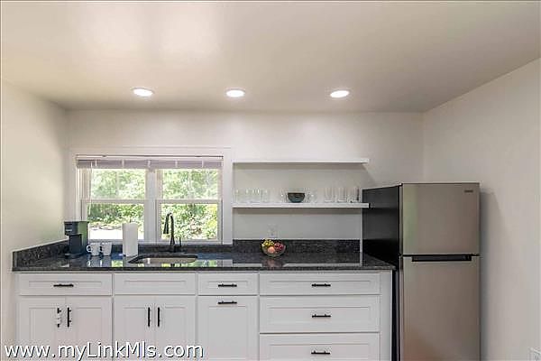 Additional amenities include a spacious garage with studio above that is perfect for extra guests; and a charming outdoor living space with a stone patio. Property is a short walk over to the public boat launch!