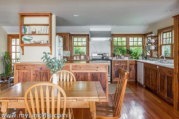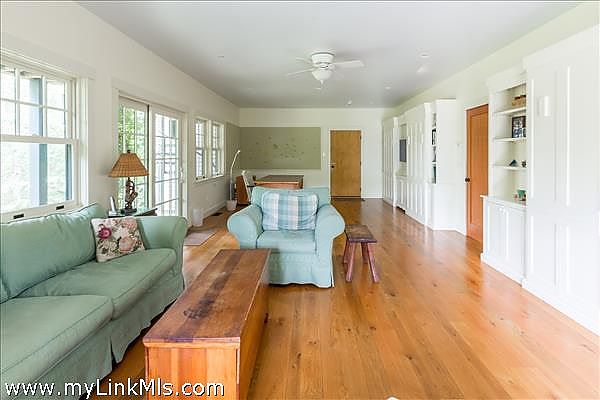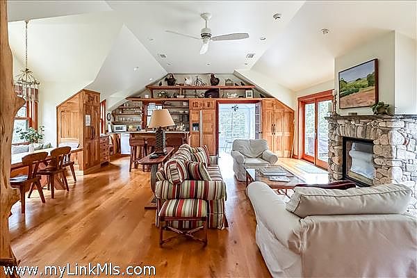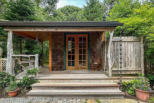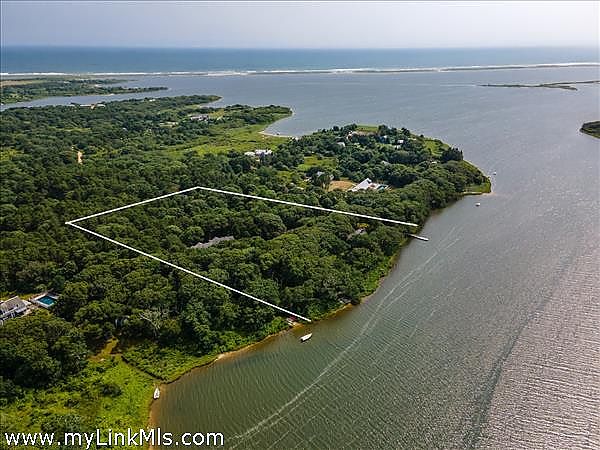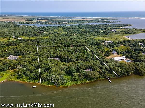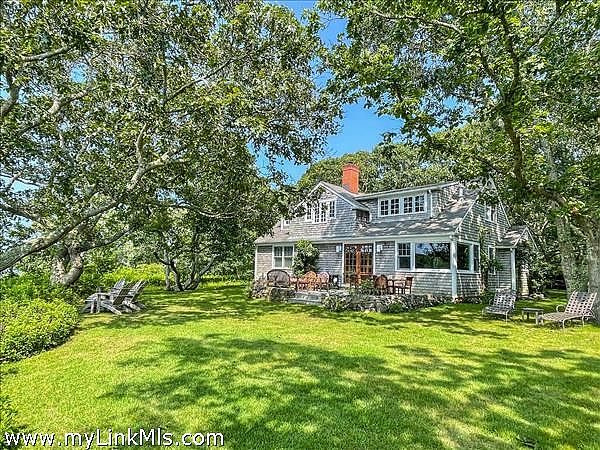 This distinguished Edgartown Great Pond compound presents an exceptional collection of features and amenities. Situated within a highly desirable, secluded enclave on Turkeyland Cove, the 4.8-acre property includes two residences, a bespoke private in-ground swimming pool, approximately 400 feet of waterfront, outstanding water views, and a private beach lot on the Atlantic Ocean. The principal dwelling offers four bedrooms, exquisite craftsmanship throughout, and a unique setting right along the water. The secondary residence was constructed in 2010 and spans 2,556 square feet, featuring two bedrooms, a three-car attached garage, and a full basement. The buildings are harmoniously integrated with meticulously designed plantings, landscape, and custom-built fencing and gates. The pool area provides a secluded oasis, with an L-shaped gunite swimming pool nicely complemented by two adjacent outbuildings. Expansive lawns gently slope towards the waterfront, and boat access to the Atlantic beach is readily available from the property shoreline. Held by the same owner for over three decades, this property represents an unparalleled opportunity.