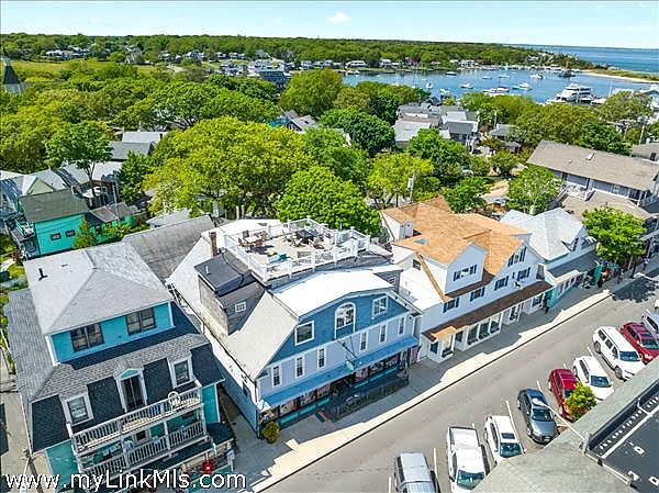 Downtown Oak Bluffs Located right in the heart of town. Unit #4 A penthouse condo with a semi-private rooftop deck (shared with unit 5 only). This spacious condo has a panoramic view of the town and surrounding waters sitting high above it all with outdoor seating and separate entrances from either condo. This solid deck adds a whole other dimension to this already desirable unit. The interior with it's custom wooden features and ships ladder to the deck gives it a nautical feel. It's surprisingly spacious with a living area, dining and separated kitchen. The primary bedroom is over 16' x 21'. Just off the hall is a tiled bathroom with glass enclosed shower and another bedroom. This space is perfect for year-round living or makes a great summer rental property with it's ideal location. No need for a vehicle with in-town living, beach, and access to all the Ferries within a few blocks.