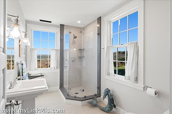 New to market this completely renovated water view home is located in a private enclave of upscale homes fronting on Squibnocket Pond in Chilmark. There are 360 degree views from this 3.6 acre hilltop site offering views of the pond, Atlantic Ocean and north to Menemsha Pond and the Vineyard Sound. Sunrise and Sunset! This home, completely renovated in 2022 features a state of the art gourmet kitchen, adjacent butler's pantry & vast open living area with wood burning fireplace, mellow wood floors and breathtaking views out every window. Four large bedrooms, three bathrooms plus a powder room. Primary suite bathroom features an independent tub and steam shower. Fully heated, insulated and air conditioned this home is four season living. Walking paths to pond access for kayaking, swimming and boating & association tennis court. This property is protected by a Trustees of Reservation Deed of Conservation Easement.