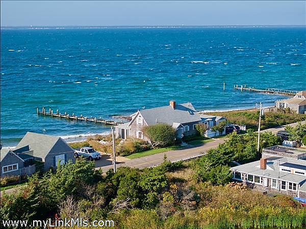 This classic East Chop Drive gem lies on a 10,000 sq. ft. lot nestled in the sand dunes, just steps to the waters edge and private dock. The 4-bedroom/2.5-bath cottage went through a substantial renovation years ago with the majority of mechanicals, electrical and plumbing being updated. There is an open floor plan with kitchen, dining and living space with cathedral ceiling and wood burning fireplace. There is a ground floor master with private bath and lots of glass, a second bedroom with half bath and laundry/mudroom. The second-floor features 2-bedrooms and a shared bath. The cottage style structure is super charming inside and out and has a wonderful water facing brick terrace with built-in planter, a covered porch and a one-car garage. Beautiful landscaping with lawns and gardens complete this very special property. Let's not forget to mention, it offers some of the best seats on the Island to take in the incredible sunsets.