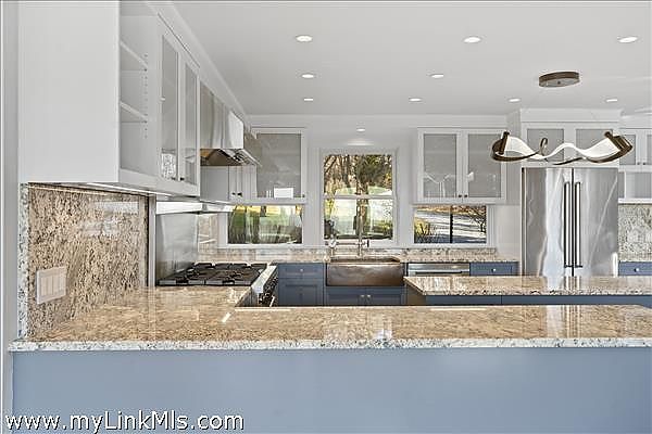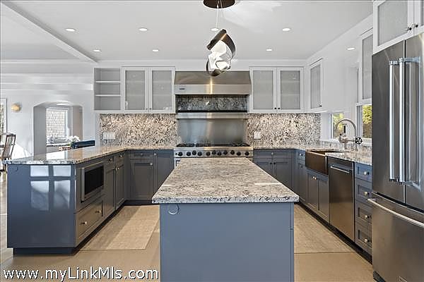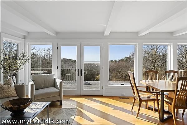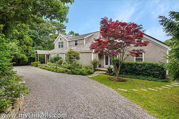 Commanding Pondfront Retreat with Private Dock and South Shore Views. This exceptional Chilmark residence offers an unparalleled blend of privacy, elegance, and modern comfort. An original Tom Tate build, and renovated in 2018, the home exudes contemporary sophistication while embracing its serene natural surroundings. A private dock on Chilmark Pond provides direct access to the water, inviting you to enjoy peaceful mornings and breathtaking sunsets over the shimmering South Shore. Just follow the most gorgeous manicured pathway, an iconic vineyard staple, to your own private dock and launch across the pond to your private south shore beach lot. The property is enveloped by more than 7 acres of abutting conservation land, ensuring a tranquil and secluded setting. The grounds are a masterpiece, featuring meticulously designed gardens that enhance the property’s timeless allure. The expansive first floor makes entertaining a breeze with wide open living spaces, and also allows for quiet work to take place in the private office. The ground level floor features more relaxed living space and wet bar with access out to the gorgeous back yard and path to the pond. The second floor is dedicated entirely to a luxurious primary suite with two private bathrooms—a sanctuary that boasts expansive water views and refined finishes. This is more than a home; it’s a lifestyle defined by elegance, comfort, and beauty. Separate guest house property also available, please inquire.
