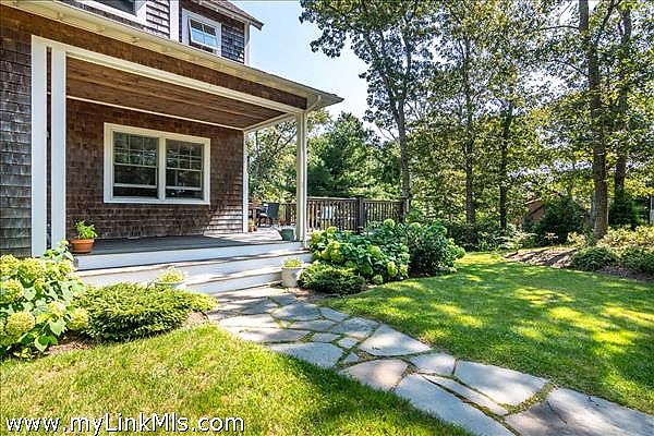 CLASSIC STYLE MEETS TIMELESS CHARM. Located at the end of a lightly traveled lane and surrounded by stunning gardens and stone retaining walls, this meticulously maintained home provides a modern and spacious environment for comfortable island living. Upon entry, the home welcomes you with an open and bright layout, featuring sleek finishes and an abundance of natural light. The gourmet kitchen is a chef's delight, featuring Kitchen Aid® stainless appliances and a center island with counter seating that seamlessly connects with the living and dining areas, creating an ideal space for entertaining or everyday living. A cozy Family Room/Den is also located on the main floor, with handsome custom built-ins and pocket doors for quiet and privacy. The second-floor primary bedroom is a private sanctuary, complete with a walk-in closet and an en-suite bathroom featuring contemporary fixtures and a spacious walk-in shower. The two additional bedrooms on the second floor offer versatility and comfort, accommodating various needs and lifestyles. With a 4-bedroom septic, the walk-out Lower Level offers an ideal are for adding a bedroom, home office, in-home gym and/or recreation area. Outside, the meticulously landscaped yard provides a serene escape for outdoor relaxation and gatherings, offering a private retreat for enjoying the beautiful surroundings. Conveniently located near nature trails that lead to the Lagoon and within a mile of Vineyard Haven with dining, shopping, and entertainment options, this home offers the perfect combination of modern living and convenience. Schedule a showing today and envision your future in this charming Vineyard Haven residence. *Note: The property is located in the Lagoon Pond watershed and will require an upgrade to an enhanced nitrogen septic upgrade. An approved septic plan is included in the purchase price.