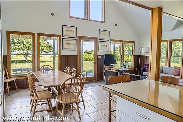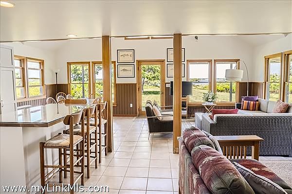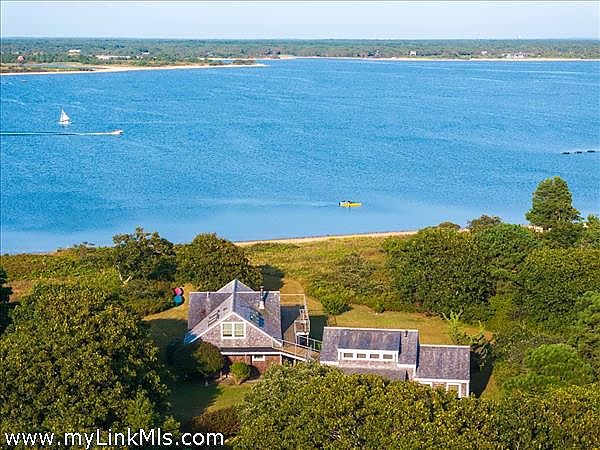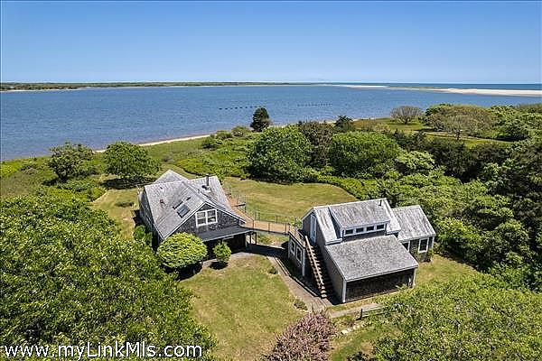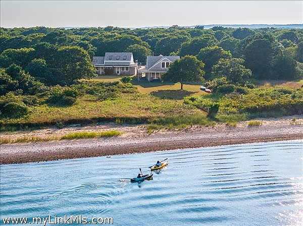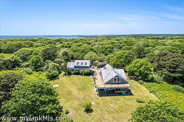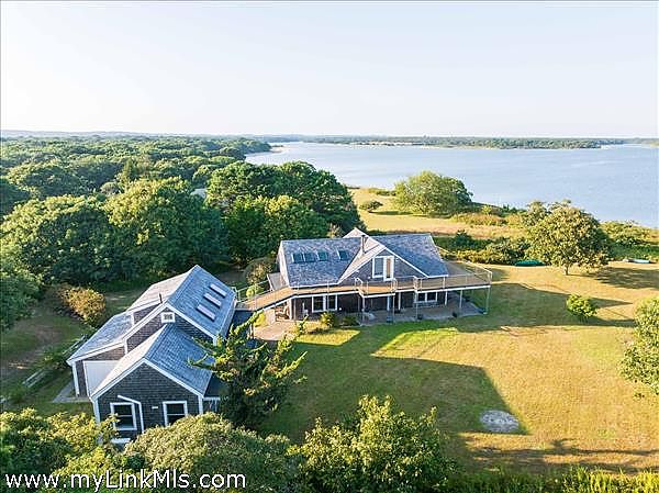 Nestled along the beautiful and tranquil shoreline of Tisbury Great Pond and surrounded by a stunning natural environment of water, sand and sky, this is an unparallelled beach house experience on the south shore of Chilmark. The five-bedroom home consists of a three-bedroom main house connected by walkways to a two-bedroom guest wing with studio space above, all with spectacular water views including from ground floor. The yard surrounding the house is a meadow like setting with an easy grassy path out to the sandy pond shoreline. Play on the pond with paddleboards, kayaks, small motor boats and sailboats, and quickly cross over to the ocean beach. Although little ones love to stay on the pond shoreline at the house to explore and swim in these safe calm waters. The existing buildings and six-bedroom septic await your vision. Abutting conservation land on two sides. Access to Chilmark beaches as well. This is a rare offering with the combination of water frontage on the pond, proximity to the ocean, conforming acreage and panoramic views. Create your own private sanctuary for your family in this wild and beautiful, natural setting.