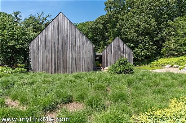 This exceptionally elegant and tranquil home in Seven Gates Farm combines contemporary architectural design with timeless high-end features for Vineyard casual, nature-inspired living. Extraordinary and rare, this move-in ready three-bedroom home with six-bedroom septic system sits on an oversized 5.3-acre parcel in Chilmark. This thoughtful layout has an easy flow, soothing tones with cypress wood paneling and accents, and combines open living spaces with separate, more secluded areas such as the TV/media room, private multi-room primary suite and private guest wing. The great room features floor to ceiling walls of windows creating a transfer of light and air from both sides of the space. The primary suite includes a separate office space, expansive walk-through closet, an architectural feature wall defining the sleeping space, beautiful bathroom of wood and glass, and access to the outdoors. Upstairs you'll find an expansive bedroom currently used as a gym and office, a cedar closet room and a large unfinished space for potential expansion. The airy guest bedroom wing is found off the entryway and includes French doors for access to the yard, built-in ceiling curtain tracks and art hanging ledges, and a full bathroom with soaking tub. The interior seamlessly blends into the exterior spaces. The artistic stonework of the front yard patio and water feature lead beyond to gardens, lawn and a trail through the wooded areas of the property. This property is part of Seven Gates Farm and enjoys the benefits of miles of coastline including three distinct beaches and two docks, 1000 acres of common land with trails weaving throughout, two tennis courts and a lovely community of neighbors. Note: 2% fee to Seven Gates Farm at closing in addition to purchase price and Land Bank fee.