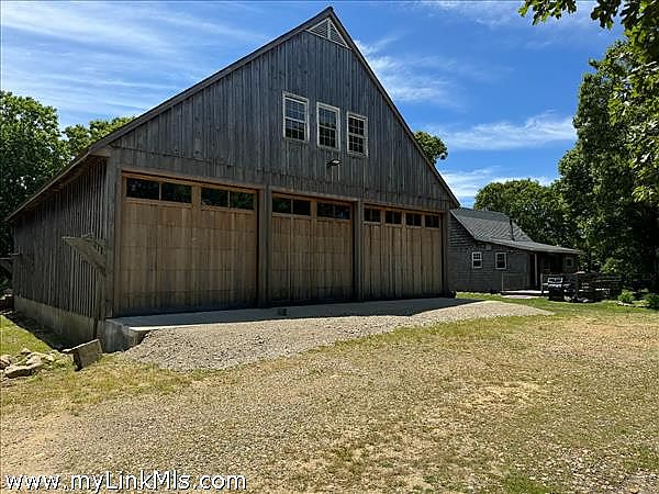 Located on 4.7 acres filled with rolling meadows and stone walls, this property boasts a truly remarkable barn that was transported from Maine, and rebuilt on the Island. The grandfathered-in barn spans approximately 61' by 45' with soaring ceilings. A staircase leads to a second-level landing area and a third level that extends across the entire structure. This additional space effectively doubles the square footage, totaling approximately 6,000 square feet. The barn offers endless possibilities, from completely renovating it into a massive 6-bedroom home to hosting large events or accommodating extensive storage needs. It must be seen to be fully appreciated.