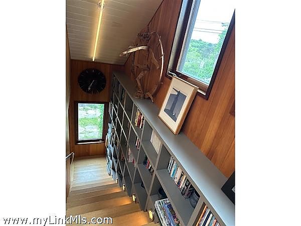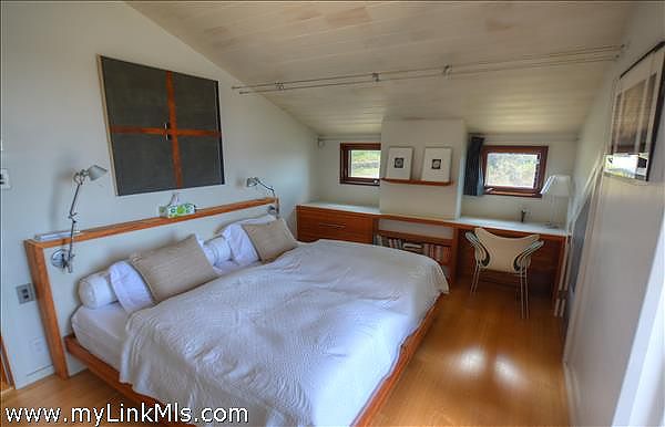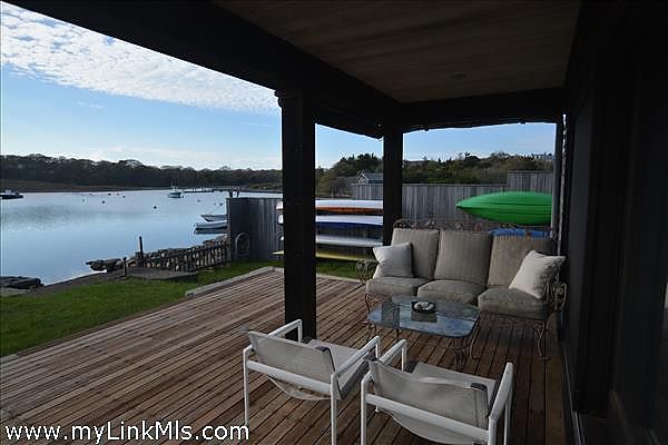 Magical waterfront Quitsa pond cottage with private dock. This home has the most spectacular views including sunsets and an intimate relationship with the charming and timeless waterfront at Quitsa Pond. Designed with the setting in mind this sublime piece of architecture has wonderful spaces, fantastic detail and so much packed into a smaller home. Landscape design by Edwina von Gal accentuates the simplistic beauty of this propery. A unique and inspirational built-in art installation by Andy Goldsworthy adorns the northeastern wall of the living room. A fireplace created with slate roof tiles unlike any other is built into the southwest wall. Custom Will Parry windows and doors throughout with giant floor to ceiling glass doors that slide wide to join the inside and outside of the home bringing the natural beauty of the area into the house. Step outside and onto your private dock with power and water, or walk down your boat ramp into the warm waters of the pond for a swim, kayak or paddleboard adventure. A custom staircase influenced by Frank LLoyd Wright has built-in book cases and metal work by artisan Whit Hanschka which brings you to the upper floor where there are 3 bedrooms and 2 baths. 2 of the bedrooms open out onto a small deck overlooking the pond and all have views of the water. This home is cozy with radiant floor heat under the tile floor