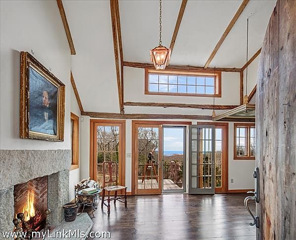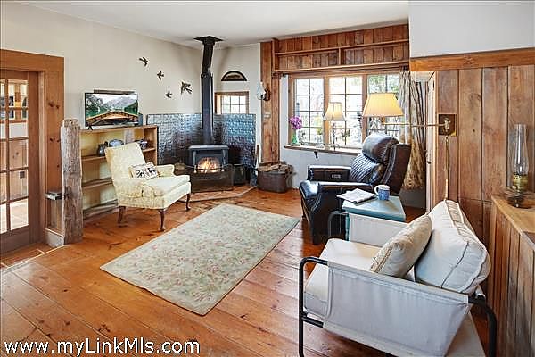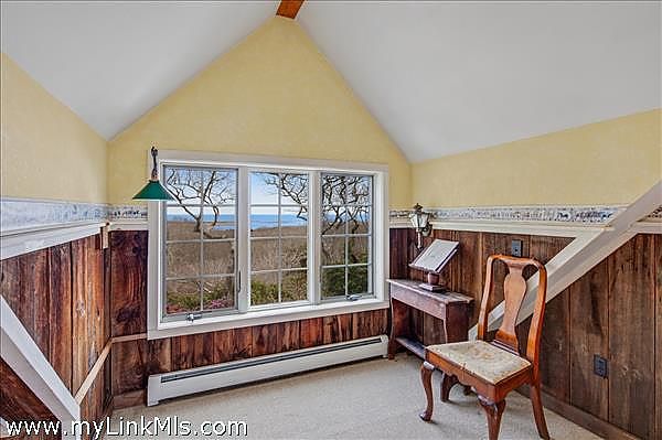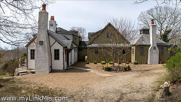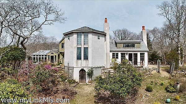 Dreamlike Chilmark retreat on 4.5+/- acres overlooking the Chilmark Pond & Atlantic Ocean beyond. Uniquely designed with European and medieval history in mind. The House has 3 bedrooms, 3 bathrooms, an atrium dining area, a two-story library, a kitchen, and a pantry/wet bar. Charming garden and plantings surround the home.