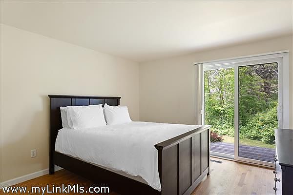 Vacation Getaway in Edgartown Estates - This sunny and welcoming contemporary could be yours this summer! With an open layout, vaulted ceilings, and lots of windows and glass doors, the home feels bright and airy. Step outside to a spacious wrap-around deck—great for relaxing or entertaining. Inside, the living, dining, and kitchen areas flow nicely and are just the right size for gathering. The first floor has three guest bedrooms, while upstairs you’ll find a loft, the primary bedroom suite, and a private balcony. Other features include hardwood floors, air conditioning, a full basement, and an outdoor shower—perfect after a day at the beach. The half-acre lot offers a nice lawn with mature trees and plantings that give privacy from the road and neighbors. The location is excellent, just off the bike path to South Beach or into Edgartown Village. Come take a look!