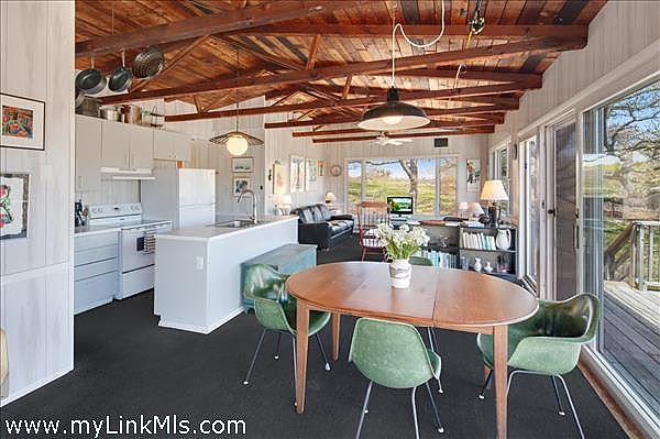 Ranch style home & Guest camp situated on 1+/- acre lot. The Main House offers distant views of Lobersterville beach and the Vineyard Sound beyond. Located in the desirable Lighthouse Road area, which offers walkable/close-by beach access and quiet roads. The view can be enjoyed from the Kitchen/Living/Dining as well as the wrap-around deck. Enjoy the open concept main living area, two bedrooms, and a shared bath. Follow the connected deck to the guest camp, which includes three bedrooms and a bathroom with laundry combined. Outdoor shower, storage shed, and the wrap-around deck complete this camp. Make this your family’s Aquinnah getaway!