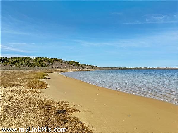 CHAPPAQUIDDICK - Dynamic views of Poucha Pond, barrier dunes, and the waters of the Atlantic are enjoyed from this 11+ acre building lot. The close to ½ mile of private pond frontage provides easy access for swimming, kayaking, paddle boarding, and everything in between. Sheltered amongst 200 acres of conservation land, enjoy and explore the wonders of the natural habitat right in your backyard. An exceptional opportunity to create more than just a home, but cherished memories for generations to come.