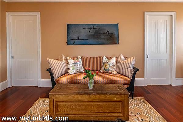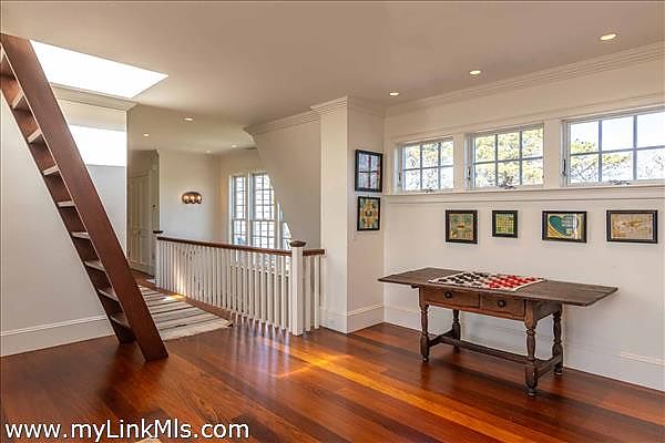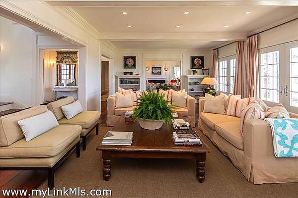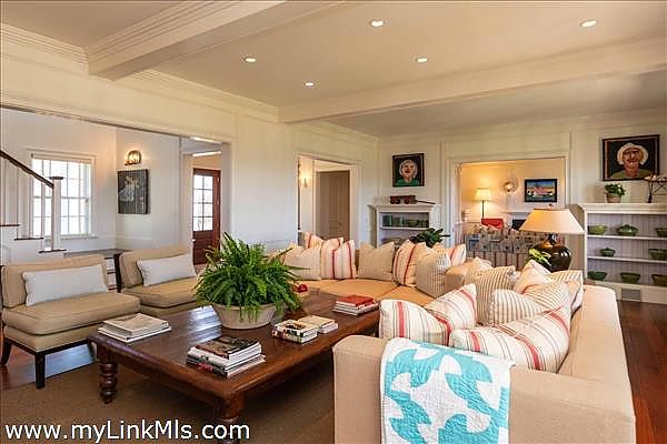 As you step inside, you'll be greeted by the warmth of four wood-burning fireplaces, handsome hardwood and painted floors, custom millwork and built-ins, a spacious screened porch and more! The rooftop widow's walk provides breathtaking 360-degree views, while the sparkling blue waters of Katama Bay can be seen and enjoyed from most every room in the house