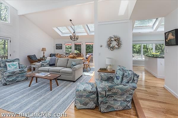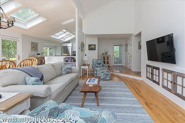 LONG POINT BEACH RETREAT. Privately set on a spacious 1.4-acre parcel in the highly coveted Long Point area of West Tisbury, this beautifully renovated beach house offers the ultimate Vineyard escape. Move-in ready and being sold turnkey, it combines style, comfort, and convenience in an unbeatable location. The sun-filled living room with a cathedral ceiling and gas fireplace, and dining area with French doors to the wrap-around deck are perfect for alfresco dining and entertaining. A bright, modern kitchen with an induction stove will delight any home chef. The main floor offers two comfortable bedrooms and a full bath, providing ample space for family and guests. Upstairs, the entire second floor is dedicated to the spacious primary suite, complete with a cathedral ceiling, skylights, a large full bath, and a private den or office—a peaceful retreat for work or relaxation. The walk-out lower level adds even more flexibility, with finished living space including a den, half bath, laundry area, and an additional bonus room—perfect for overflow guests, media room, or hobby space. The location is ideal with easy access to Long Point Beach, the bike path, and proximity to Up-Island towns as well as Down-Island villages for shopping, restaurants, and more. This home also includes access to Lambert’s Cove Beach, offering some of the island’s finest sand and surf. Whether you're seeking a seasonal getaway or a year-round residence, this exceptional property delivers the best of the Vineyard lifestyle.