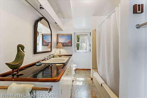 Unique, waterfront property with amazing, 180 degree views of the lagoon from one side of the property, and the Vineyard Haven Harbor on the north side of the property. Zoned both residential and commercial, rarely does such a unique property become available. Elevated above Beach Road and the lagoon, there are 2 structures on the property. The first, sited on the lagoon with private access, is a year-round home with breathtaking, expansive sunrise views up and across the lagoon. This building has 4 bedrooms, two on the first floor and two on the second floor, 2 baths, one on each level, and 2 living areas. The upper level has a spacious deck overlooking the gardens and expansive views of the lagoon. The waterside patio has beautiful perennial gardens. There are many creative details throughout. Use the property as it is or take advantage of the work the sellers have completed to turn it into 3 condos: 2 residential condos and one commercial condo. The commercial building is currently used as an artist’s studio. Work needs to be done to meet building code regulations for a commercial operation. Mooring is transferable. Property is connected to the town sewer and town water.