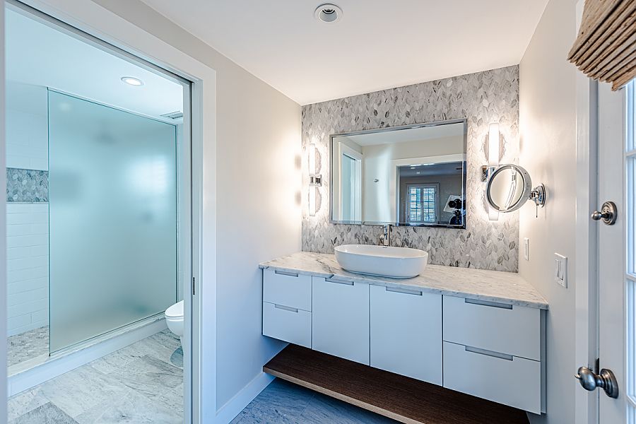Baths:4Half Baths:1Bath Description:5 baths, with Glass walk in showers, 1 powder room, 1 enclosed outside shower off of guest house.