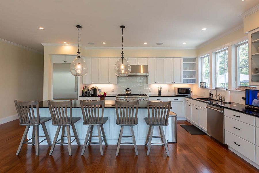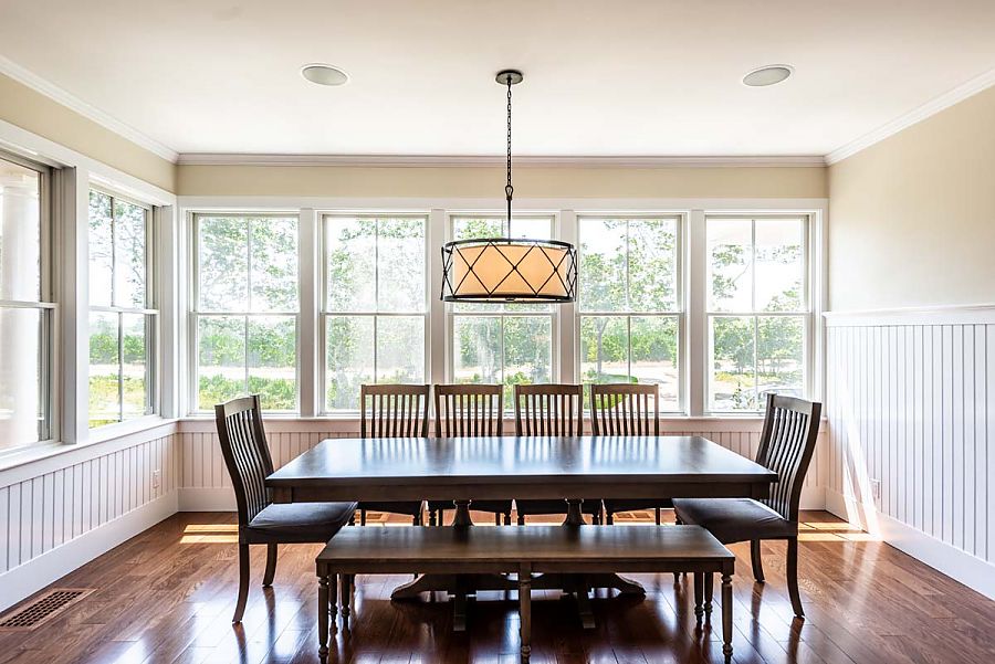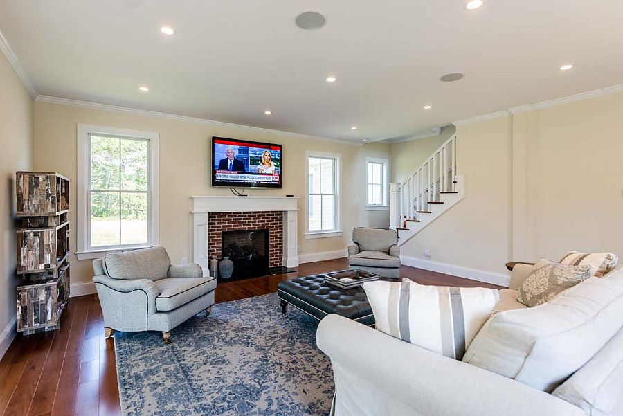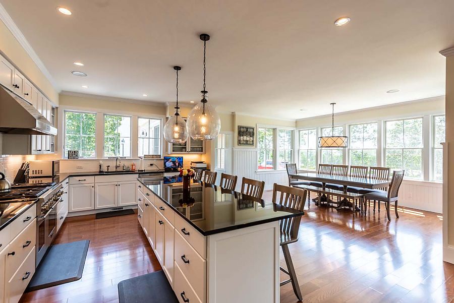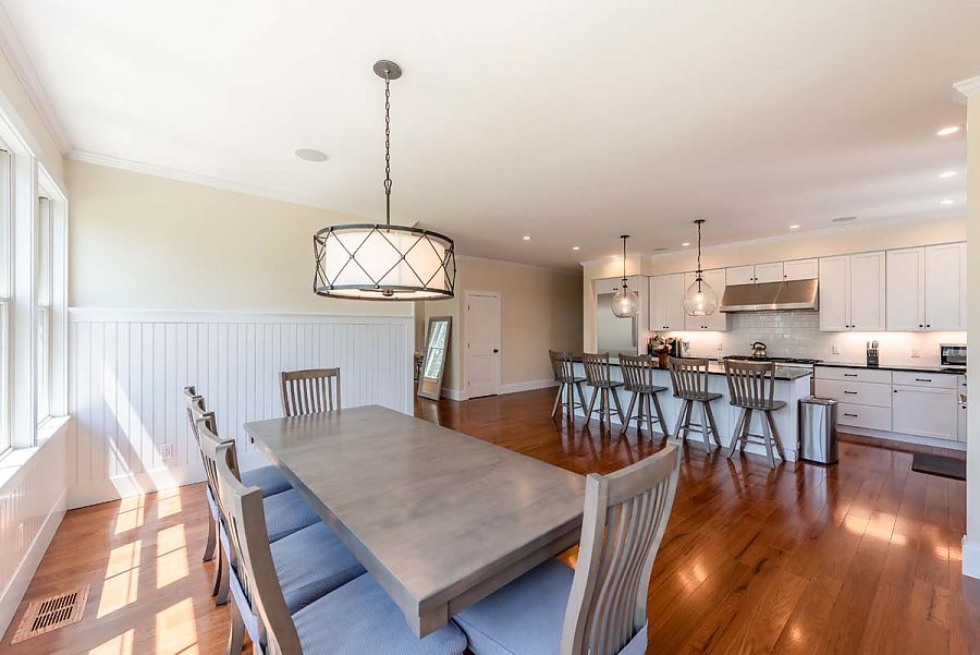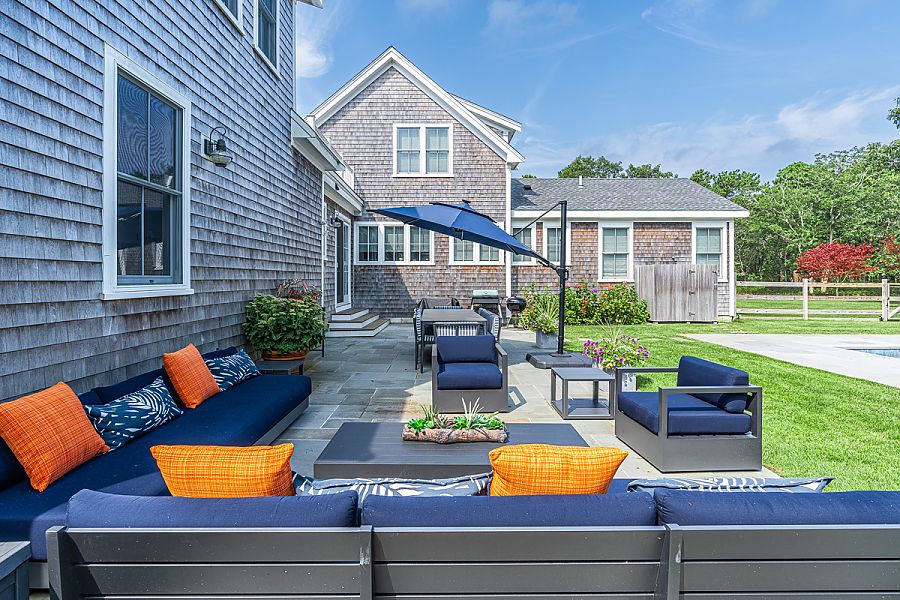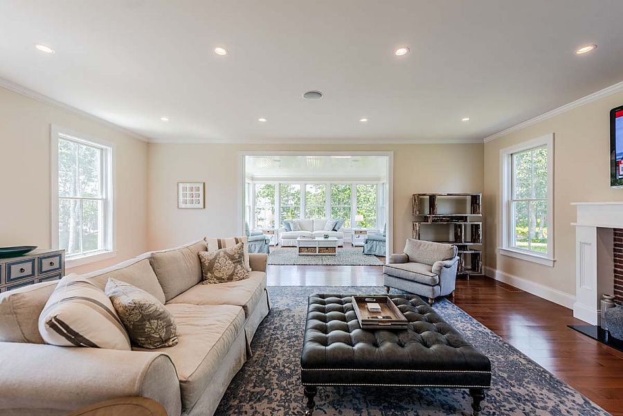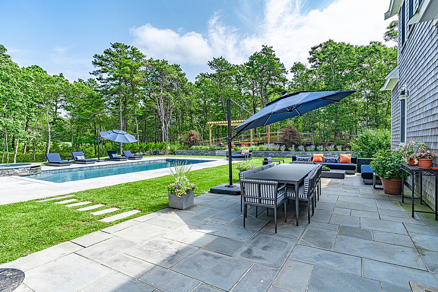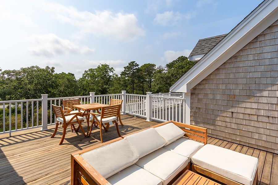 Inside, this charming home comprises 5 bedrooms, 4 bathrooms, a powder room, spacious open living areas, a chef's kitchen, a dining area that seats 10, and a delightful sun porch open to the main living area.
