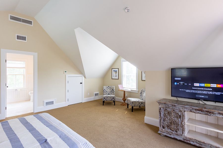 Bedroom 3:  2nd Level Queen, Above Carriage House, TV, full bath, private deck, access from inside house