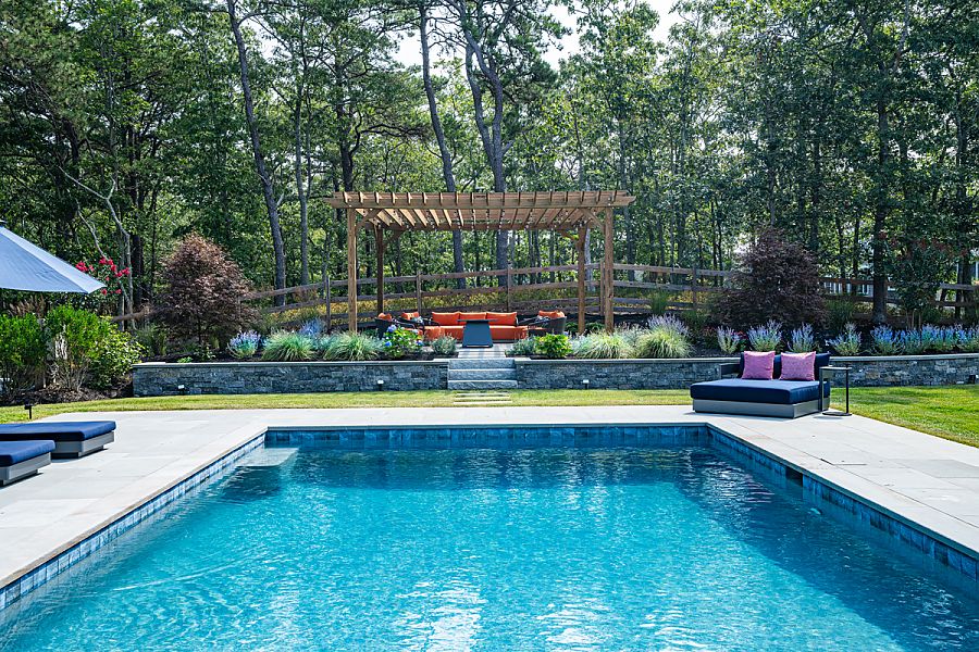 Embodying the essence of summer living, this property boasts a heated pool ensconced within a meticulously landscaped yard bordered by Woodlands. The Bluestone patio offers numerous spots to unwind with friends and loved ones, featuring a pagoda at one end of the pool equipped with outdoor living seating, chaise lounges by the poolside, and a separate patio area with outdoor dining facilities, ideal for enjoying meals in the open air.