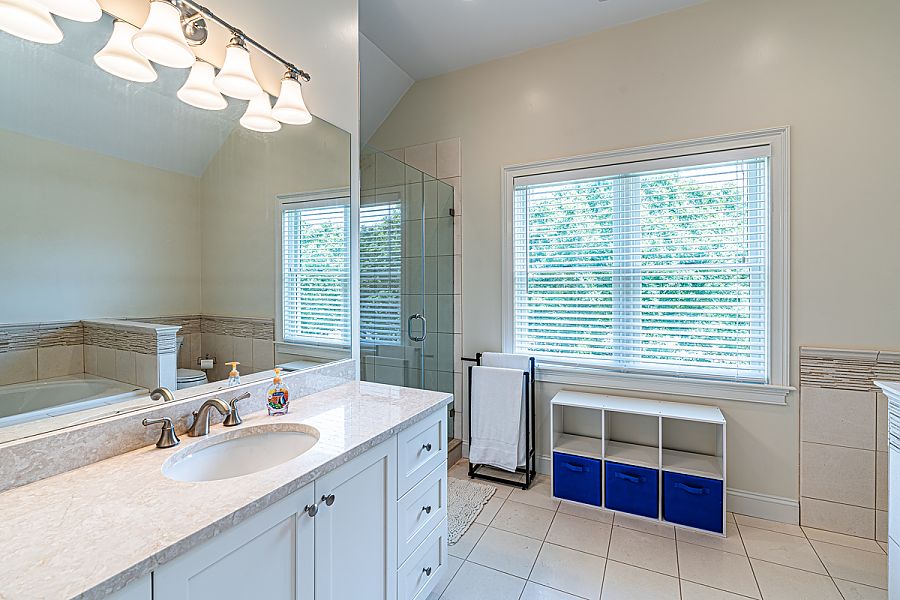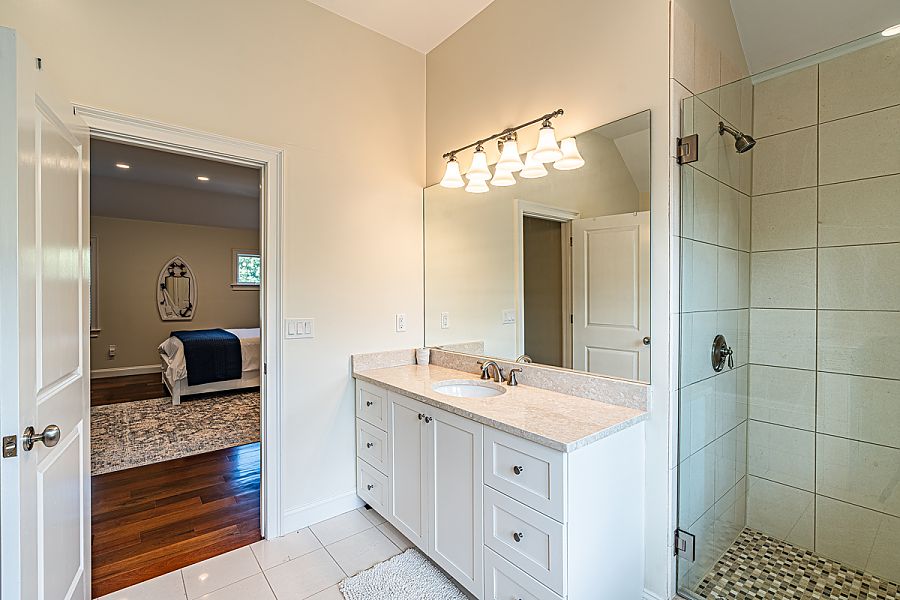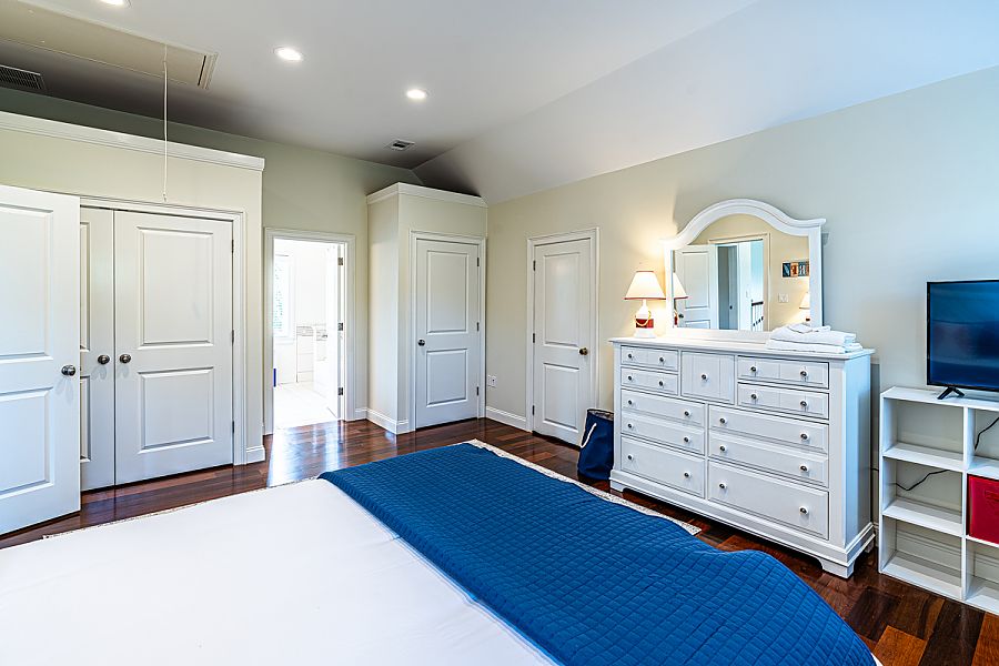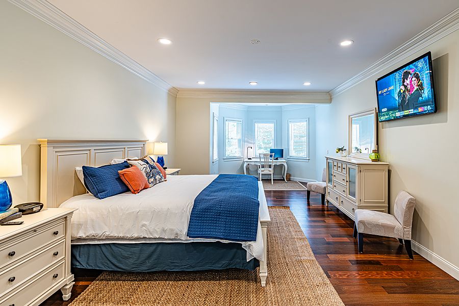 Guest Primary Bedroom 2nd Level, Queen, TV. bath with walk-in glass shower