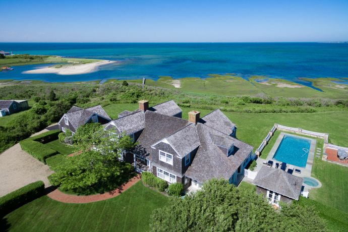 Luxury Coastal Gambrel Home with Pool and Carriage House. This Eloquent Home was designed by architect Patrick Ahearn and features waterviews of Nantucket Sound from many rooms within the house,...Read more